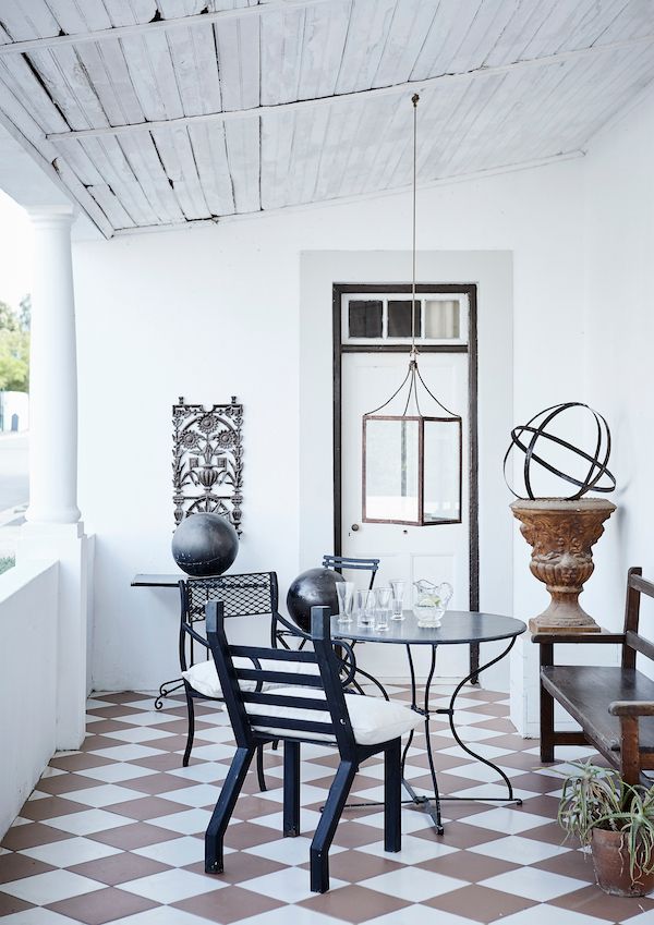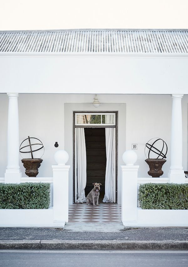 EVOLVING DOOR. “The addition of pillars to a simple country home would have happened in the 1920’s to denote that the building was for official use,” says homeowner Cobus van Niekerk of his home's facade. His covered verandah looks onto the street and is a showcase of his bold ability to marry different styles confidently.