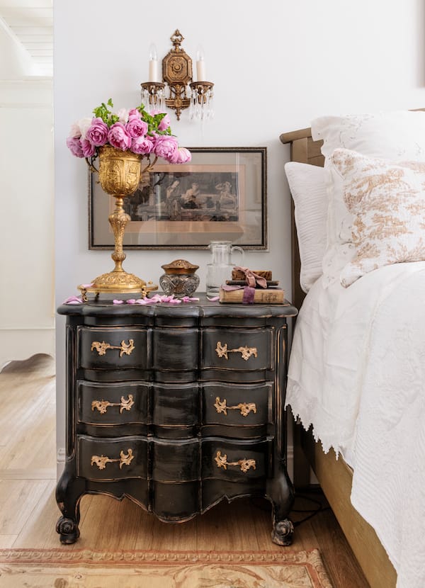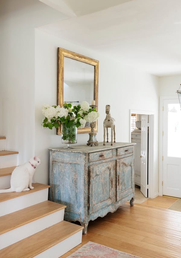 Fifi: Go for pieces with character and a gentle patina; a piece of artwork or two; fresh flowers, even if it’s just wildflowers, one rose, or a dainty sprig. Oh, and don’t forget a cat or a dog! No self-respecting French home would be without pets!!