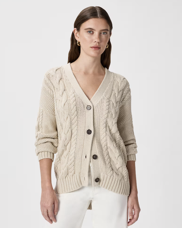 COZY UP. My favorite sweater is everything: chunky yet breathable, airy yet warm, classic yet modern. The oversized shape feels so right now and the midweight, cable-knit organic cotton is perfect for year-round wear.