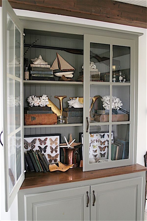 DISPLAYS OF AFFECTION: I love to collect; oil paintings, old copper cookware, ironstone, vintage cutting boards...and so much more. Whatever the collection is, I think it makes a bigger, better impact when grouped together, rather than scattered throughout a house. For example, I have a pot rod in my kitchen where I display all of my copper, and I like to group my antique paintings into collected gallery walls. I also have a cabinet in my living room that I call my "cabinet of curiosities" where I store all of my smaller collected tchotchkes behind glass doors. Keeping them confined to one space keeps my home from looking cluttered.
