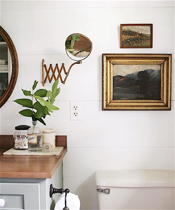 ART SMARTS: Every modern country home needs art. I love collecting artwork, and the older and crustier the better! It's such an easy way to inject character into a room. I'm partial to antique portraits and landscapes, especially when they're painted on unframed canvas. But it's not just for above a fireplace mantel; I have art in unexpected places, like on my kitchen shelves or above the toilet in the bathroom.